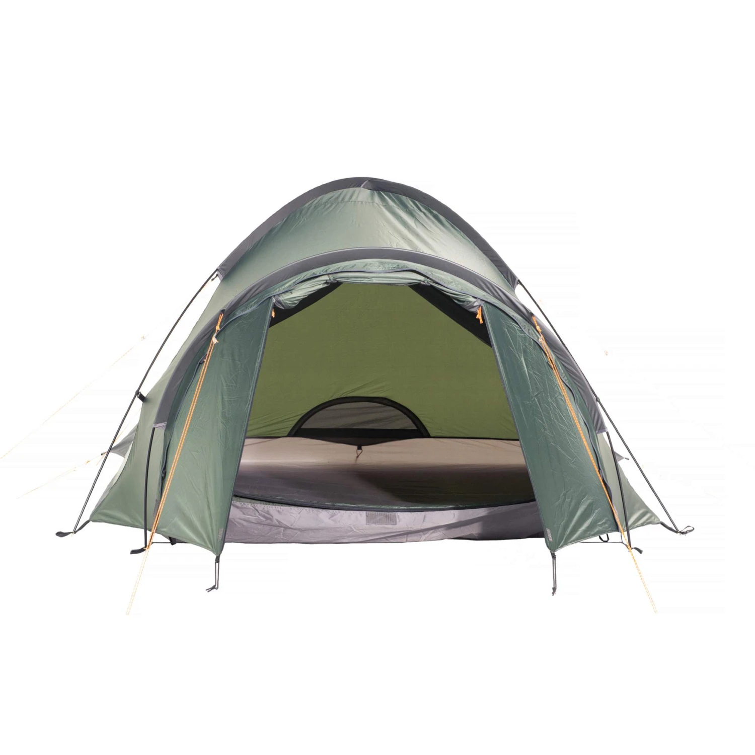 - Außenzelt und Innenzelt werden durch außenliegendes Gestänge gleichzeitig aufgebaut