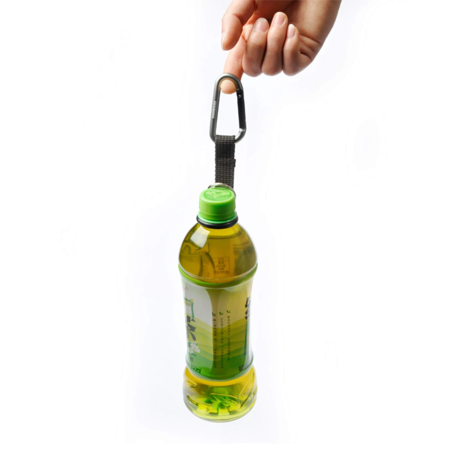 Praktischer Helfer, um klassische PET-Wasserflaschen am Klettergurt oder Rucksack zu sichern. Einfach den Deckel abschrauben, den Ring über den Flaschenhals legen und den Deckel zuschrauben.