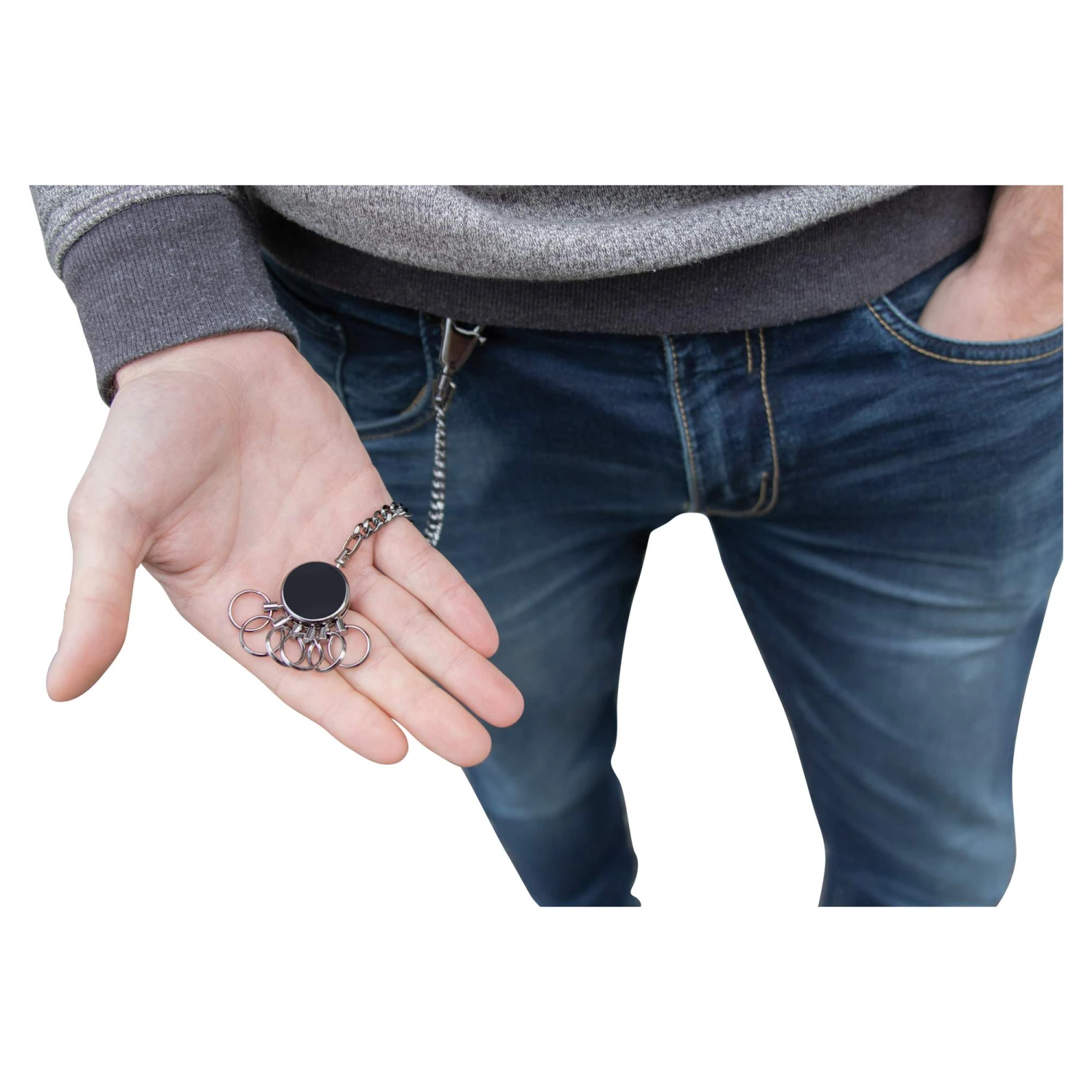 Hochwertiger Schlüssel-Organizer, der es dir sekundenschnell erlaubt, einzelne Schlüssel aus dem Ring zu entnehmen und einzusetzen. In dieser Version mit Gürtelkette.
