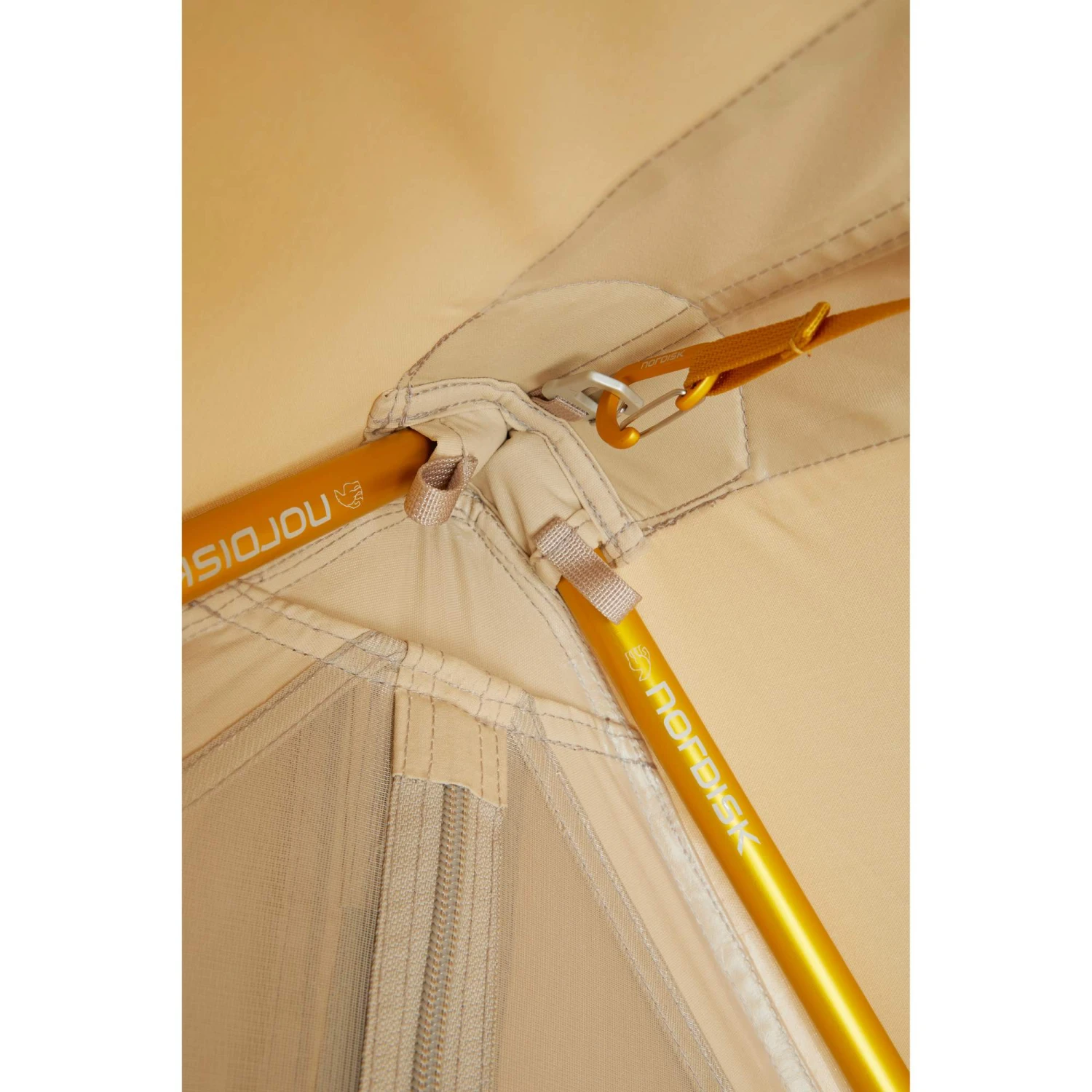 Das Zelt wird ohne Aufstellstangen, Abspannleinen und Heringen geliefert. Das entsprechende Set (Colour Pack) muss separat in der gewünschten Farbe gekauft werden (siehe Zubehör).