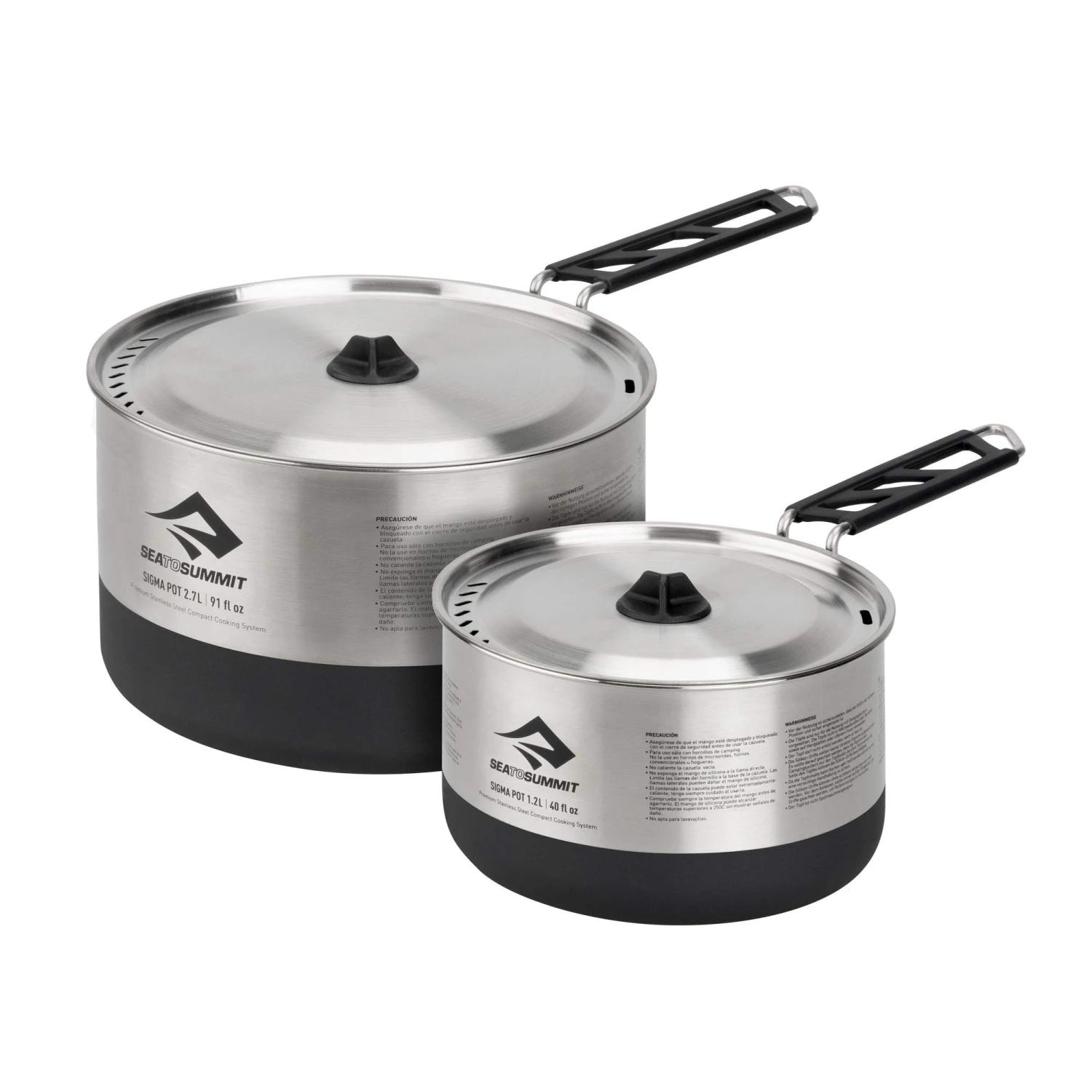 Dünnwandige und dennoch stabile Kochtöpfe aus Edelstahl mit 1,2 l und 2,7 l Volumen. Diverse praktische Funktionen machen die Töpfe zum optimalen Begleiter auf allen Outdoortouren. Inkl. Geschirrtuch.
