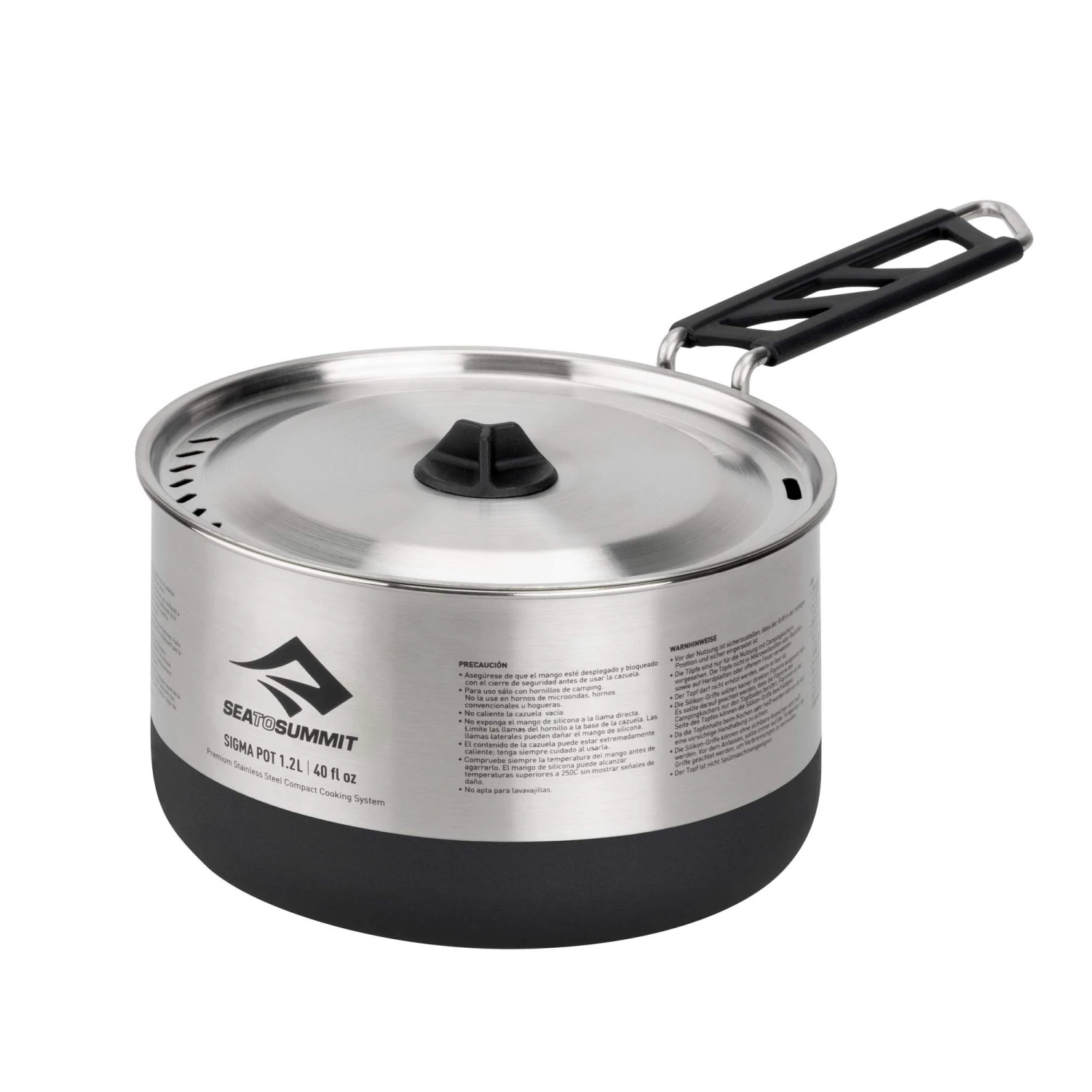 Klassische Edelstahltöpfe sind häufig sehr schwer und damit für Outdoortouren ungeeignet, bei denen du das Gepäck mit eigener Muskelkraft transportieren musst. Die Sigma-Serie schafft Abhilfe. Das dünnwandige und dennoch robuste Material nimmt nicht mehr Platz ein als nötig. Der isolierte Griff kann zum Transport über den Topf geschwenkt werden und fixiert dort den Deckel. Für die Benutzung rastet der Griff durch den Pivot-Lock fest ein.